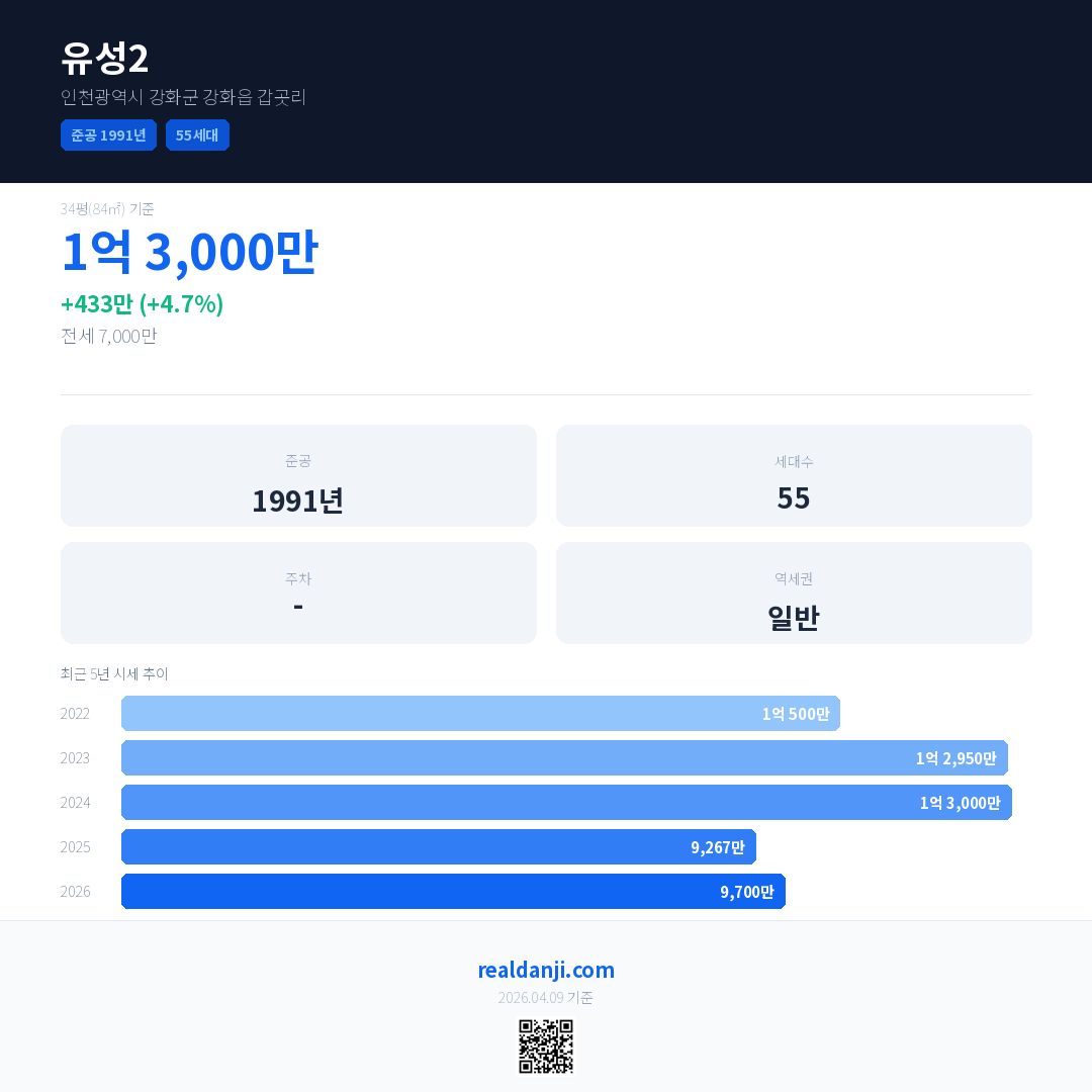 유성2 최근 거래가는 1억 3,000만입니다. (2026-02)
