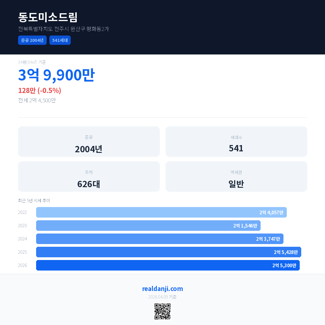 동도미소드림 최근 거래가는 3억 9,900만입니다. (2026-03)