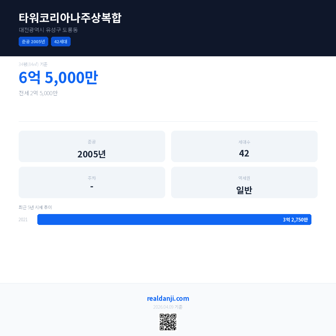 타워코리아나주상복합 최근 거래가는 6억 5,000만입니다. (2025-08)