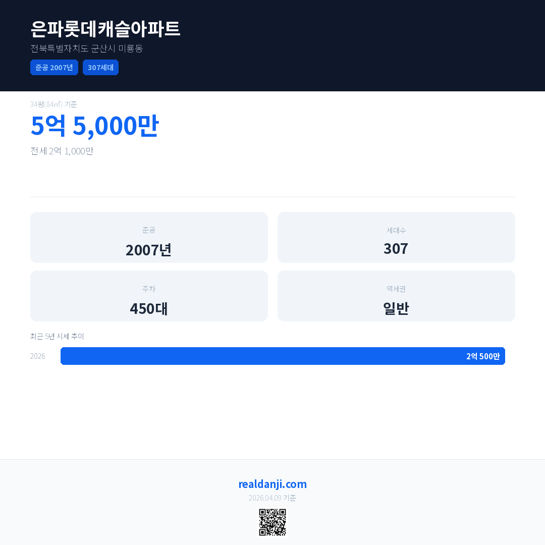 은파롯데캐슬아파트 최근 거래가는 5억 5,000만입니다. (2026-03)
