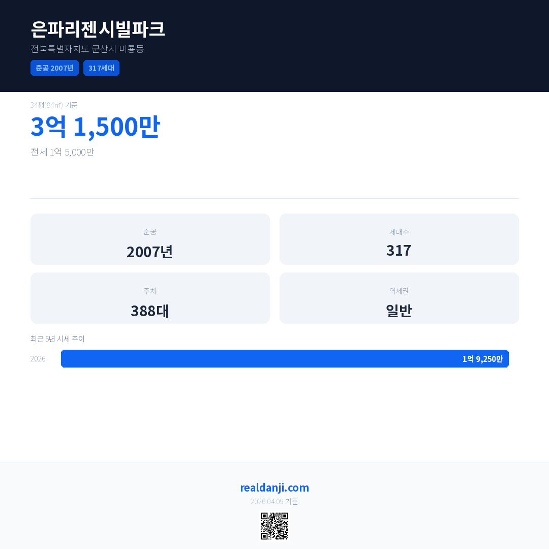 은파리젠시빌파크 최근 거래가는 3억 1,500만입니다. (2026-02)