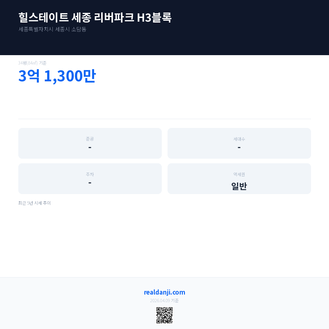 힐스테이트 세종 리버파크 H3블록 최근 거래가는 3억 1,300만입니다. (2019-02)