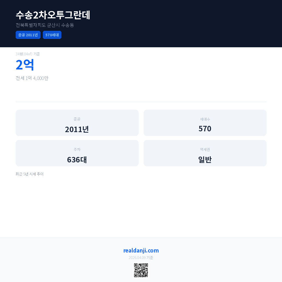수송2차오투그란데 최근 거래가는 2억입니다. (2026-03)