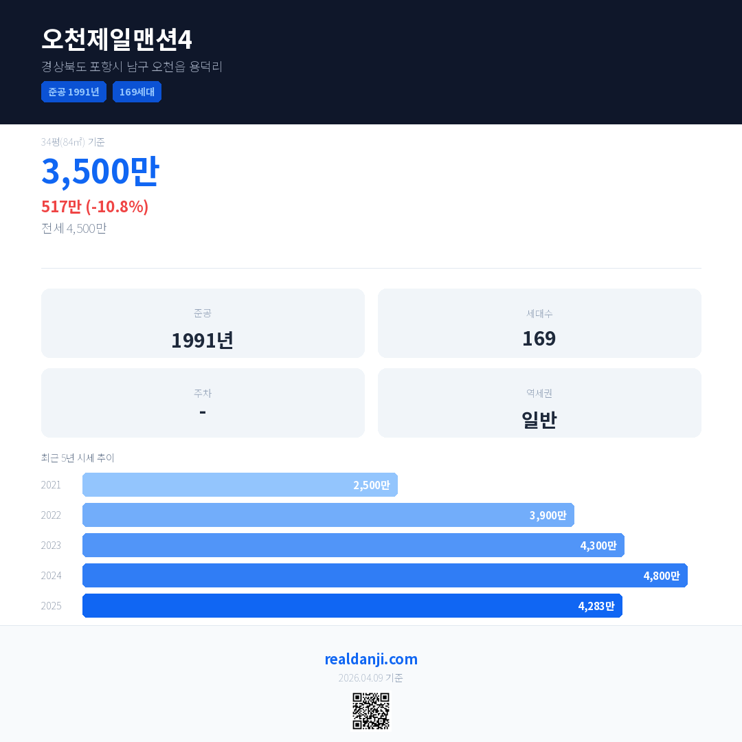 오천제일맨션4 최근 거래가는 3,500만입니다. (2026-04)