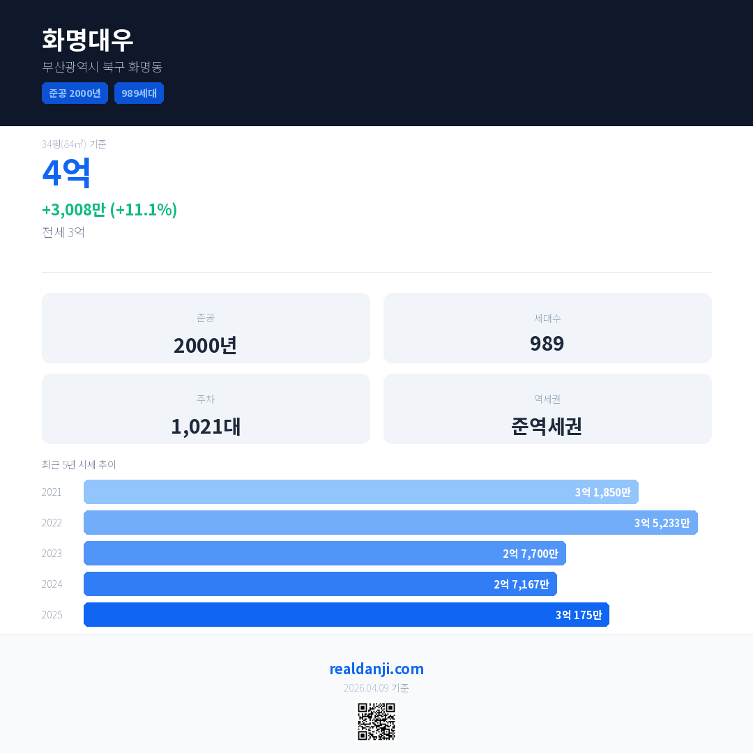 화명대우 최근 거래가는 4억입니다. (2026-03)