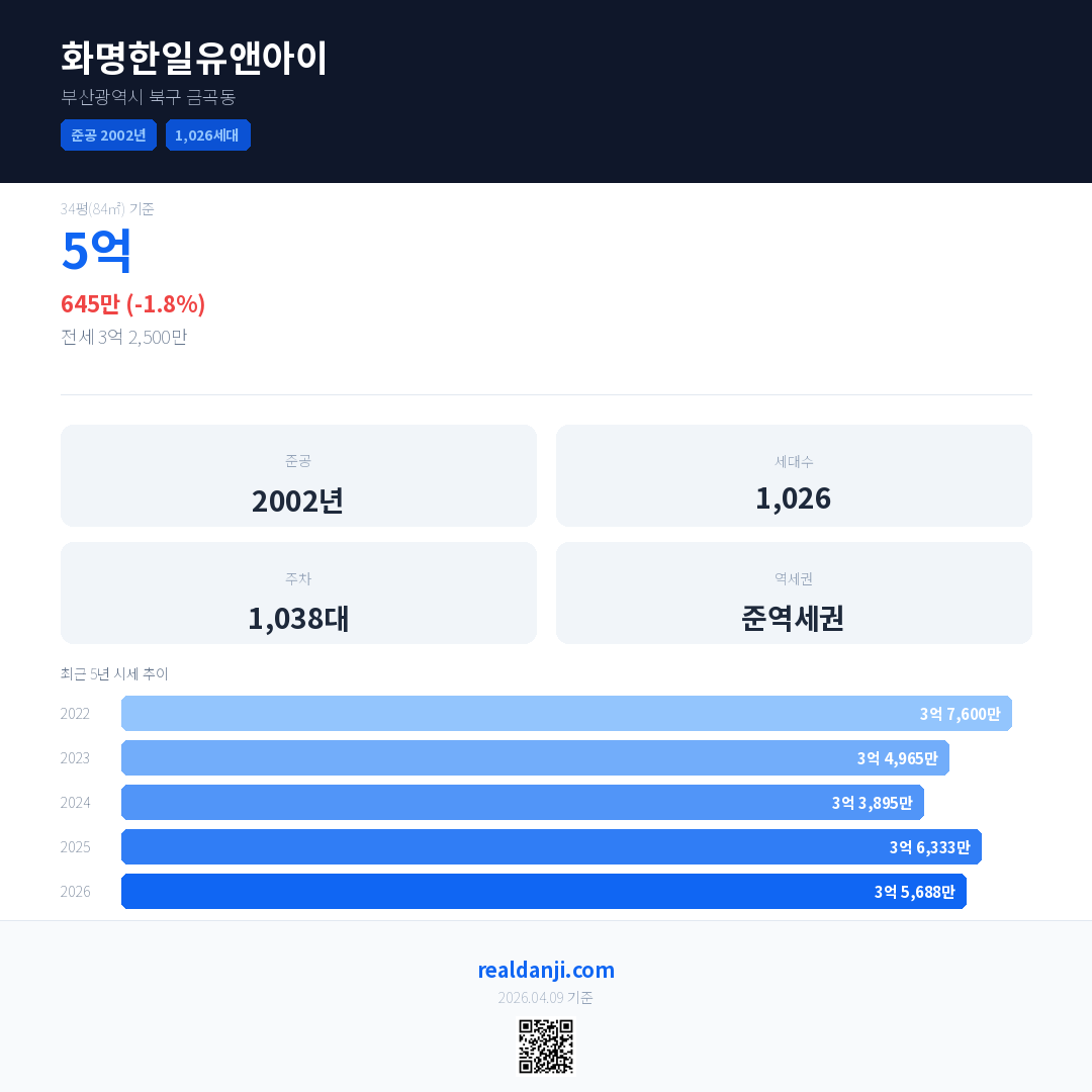 화명한일유앤아이 최근 거래가는 5억입니다. (2026-03)