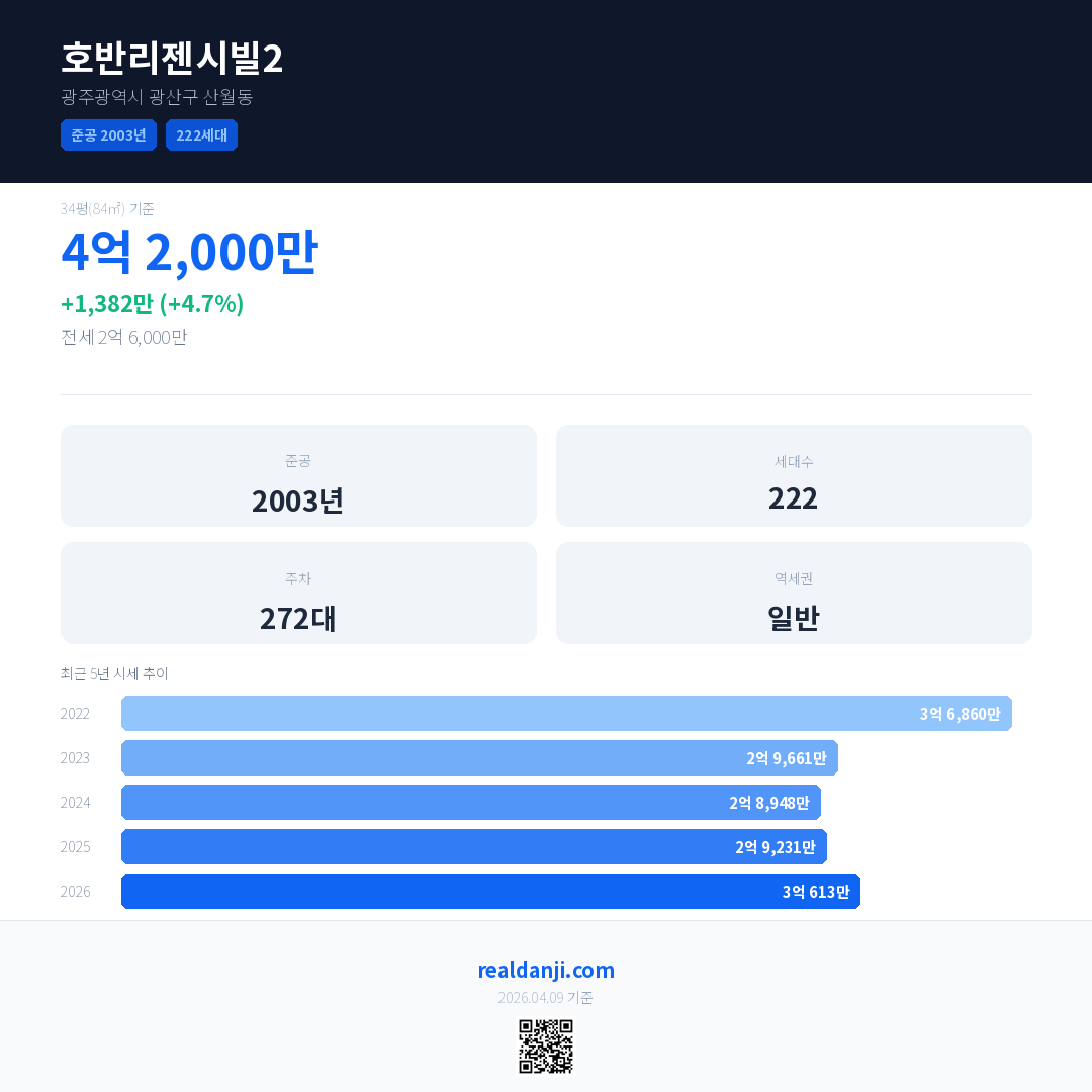 호반리젠시빌2 최근 거래가는 4억 2,000만입니다. (2026-04)