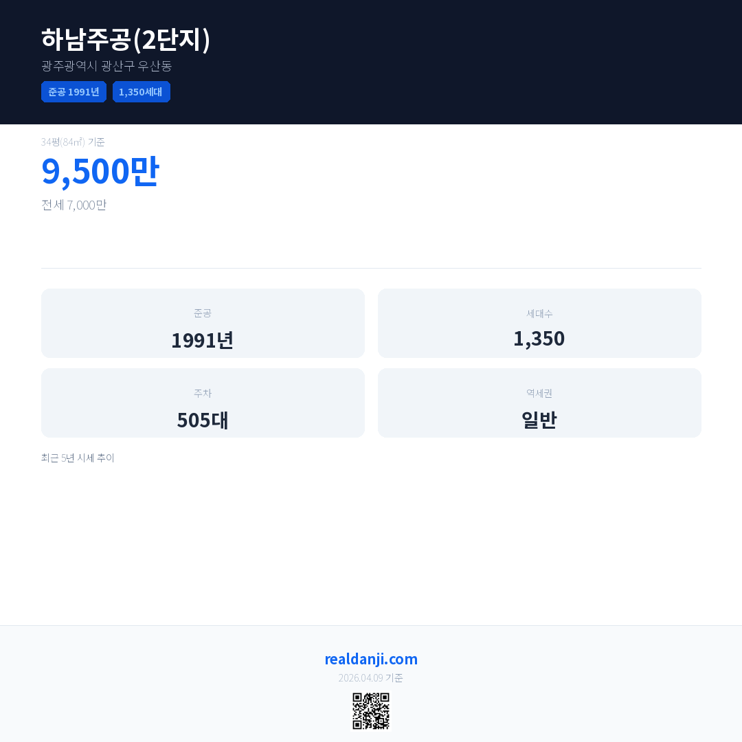 하남주공(2단지)은(는) 1991년에 준공되었으며, 현재 35년차입니다. 총 1,350세대 규모입니다.