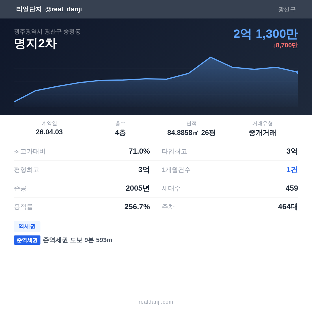 | 2026.04.03 | 85㎡ | 4층 | 2억 1,300만 |