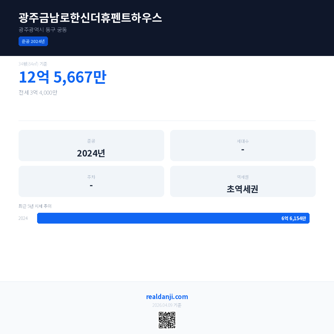 광주금남로한신더휴펜트하우스은(는) 2024년에 준공되었으며, 현재 2년차입니다.
