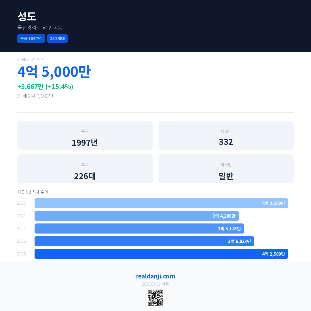 성도 최근 거래가는 4억 5,000만입니다. (2026-03)