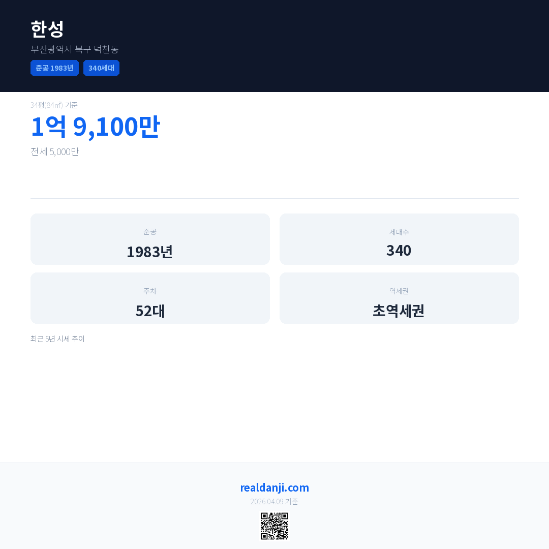 한성 최근 거래가는 1억 9,100만입니다. (2026-02)