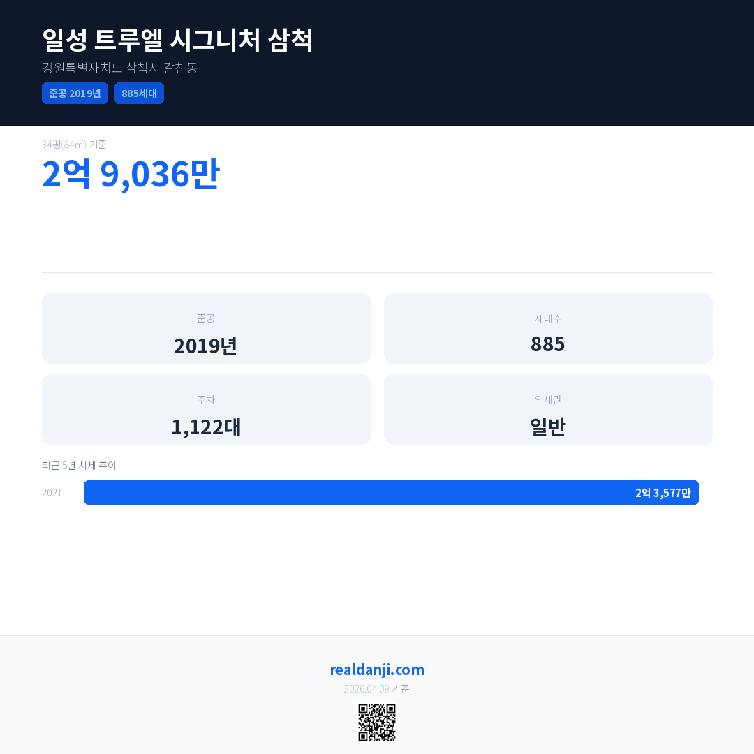 일성 트루엘 시그니처 삼척 최근 거래가는 2억 9,036만입니다. (2021-12)