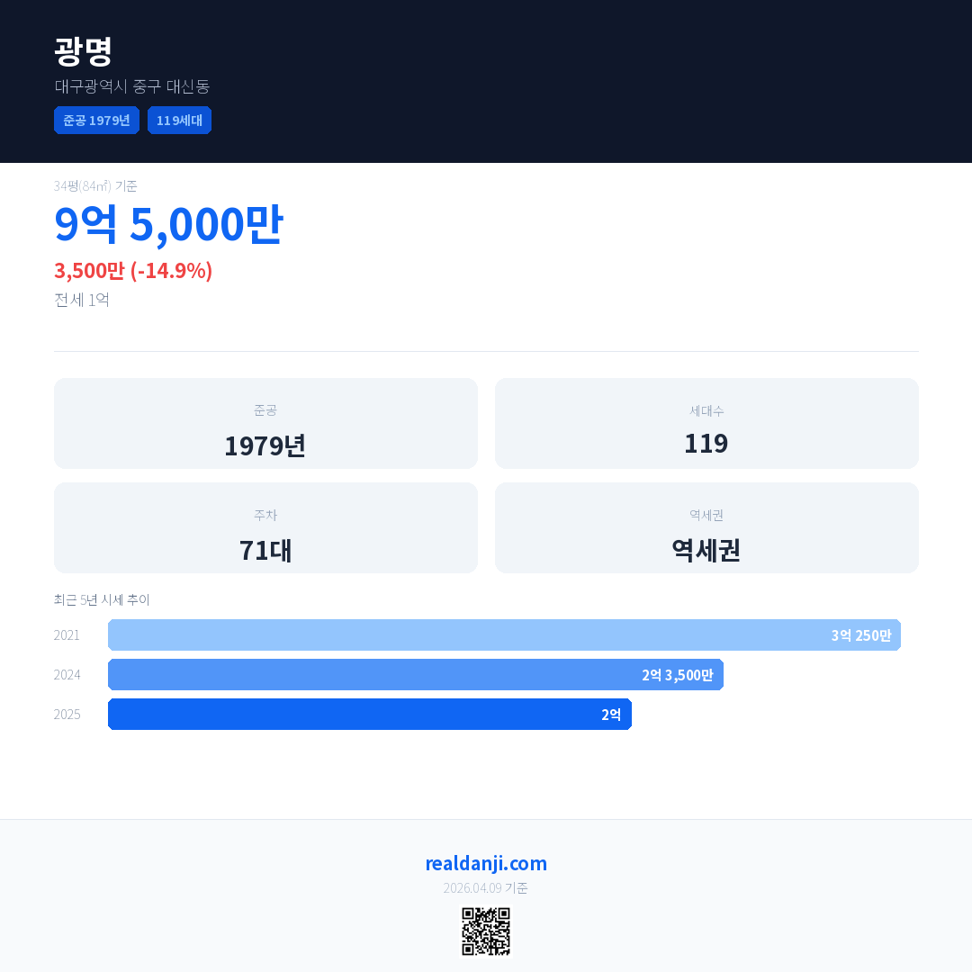 광명 최근 거래가는 9억 5,000만입니다. (2025-02)
