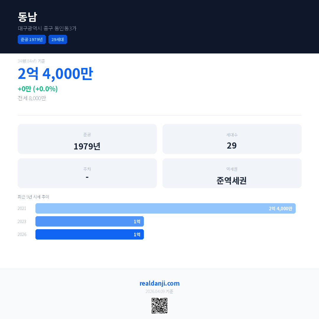 동남 최근 거래가는 2억 4,000만입니다. (2026-03)
